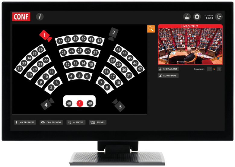 multiCAM CONF allows you to automatically produce videos of your conferences. Its Artificial Intelligence (AI) controls PTZ cameras and determines shots according to the speaker. Compatible with all audio-conferencing systems on the market, integration is simple and efficient.