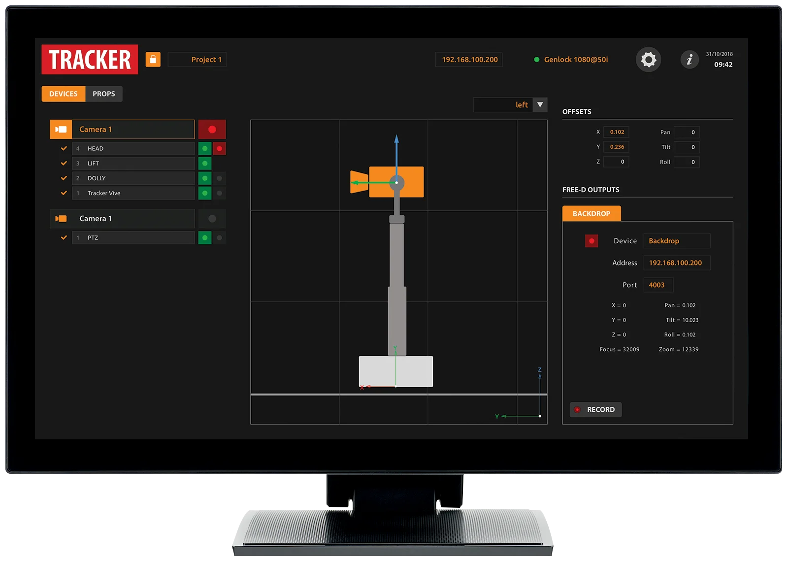 multiCAM TRACKER is an ergonomic and intuitive interface for aggregating tracking data from different SPIRIT robots and providing a single FreeD signal per camera for virtual production engines.