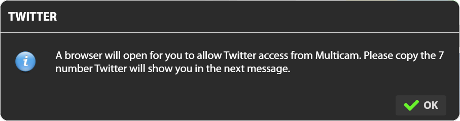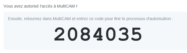 Copy the code displayed in the browser and paste into the Multicam dialogue box.