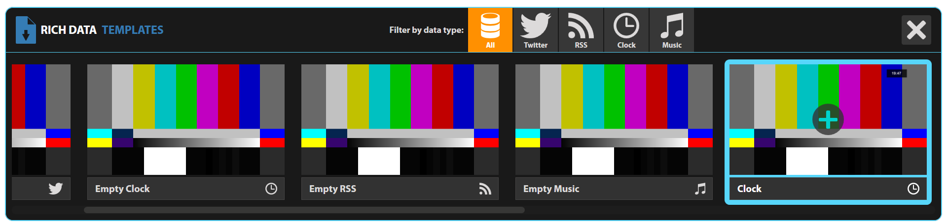You can filter by type of advanced title by clicking on the desired category (Twitter, RSS, Clock, Music):