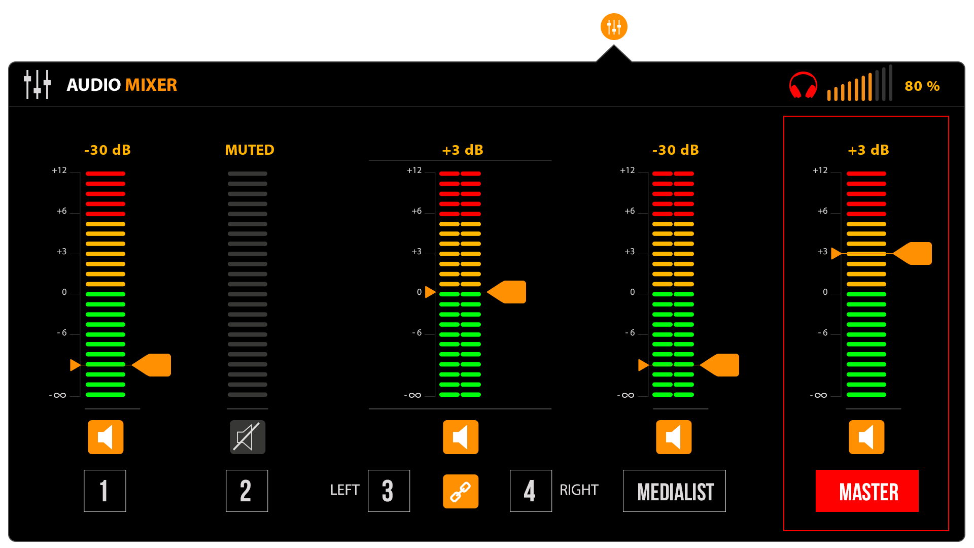 The AUDIO MIXER allows you to visualise and adjust the sound level of every audio source on the system: