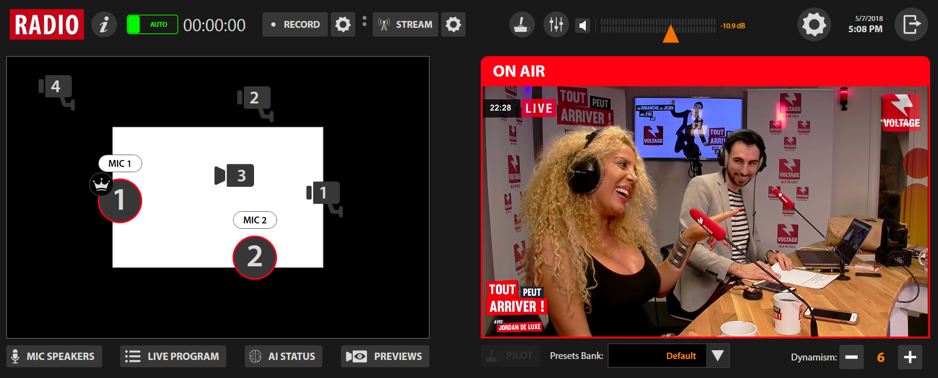 - PILOT: Control the on-air camera in order to adjust the preset used.