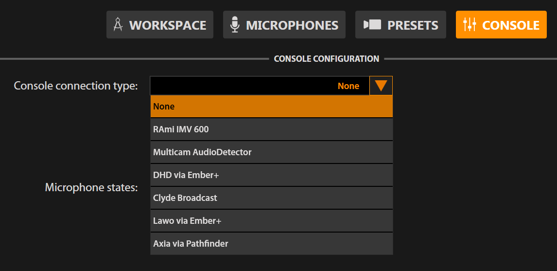 If the console manufacturer offers “Audio Over IP” (AOIP) drivers, select AUDIO-DETECTOR.