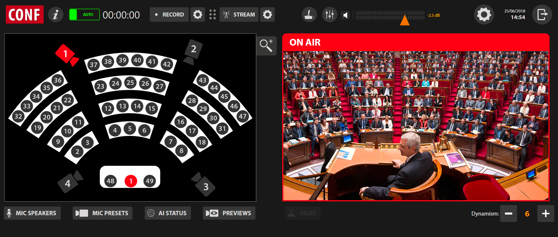 - MIC SPEAKERS: Management of the list of names associated with the microphones for the automated titling of the participants.