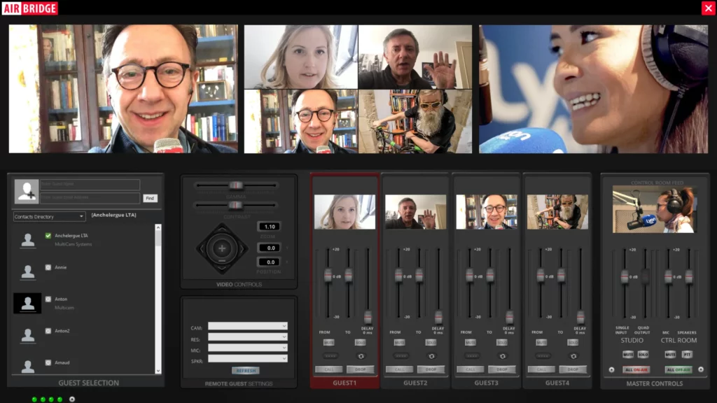 The system is ideal for radio, small Web TV or podcast productions. AIRBRIDGE’s other features comprise video call-in management with queue and compatibility with A/V standards (AoIP I/Os, NDI/SDI Os). It’s the only professional video calling solution that lets users control remote guests’ video settings (scale, position, picture). The system also allows operators to manage participants’ mix-minus audio, adjust guests’ audio delay and send video program to guests.