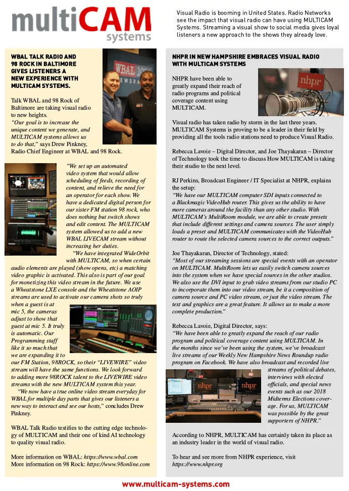 MULTICAM SYSTEMS BRINGS VISUAL RADIO TO U.S.